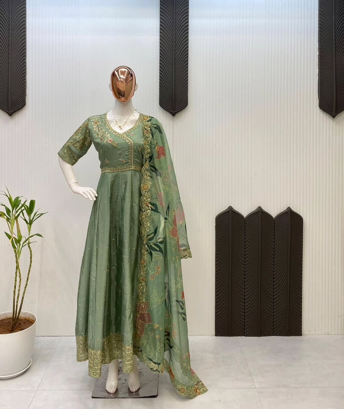 ❤️ chinon silk with sequins embroidery dress ( approx 56 inch)